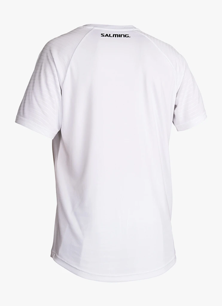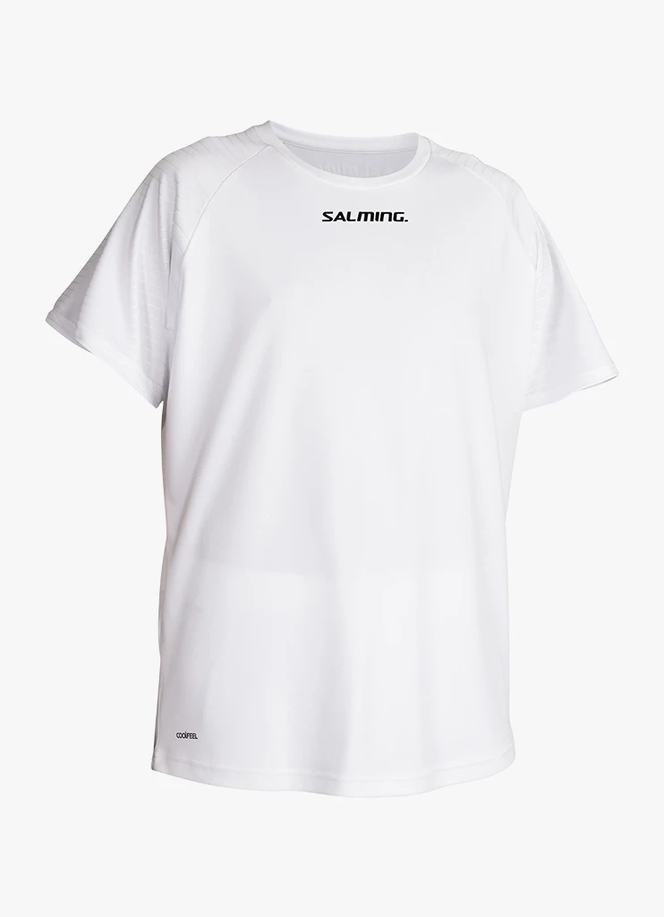 The Salming Granite tee is made of a flexible Coolfeel fabric that gives you all the freedom of movement you need during a game. The comfortable fit and the beautiful design make you feel like a winner in every match. Moreover, the Coolfeel technology ensures that excess sweat evaporates quickly, keeping your body dry and cool in the heat of the game. Combine this Salming Granite tee with the matching Salming Granite Game Shorts. The embossed pattern on the sleeves of the shirt also appears on the side of the squash pants.