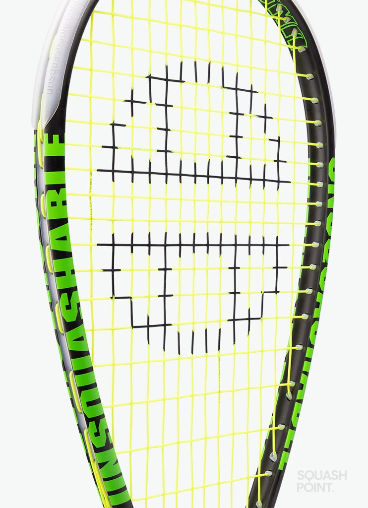 The frame of the Unsquashable Jahangir Khan 555 weighs only 120 grams and has a low balance point. As the most weight is in the bottom, the racket is very easy to maneuver. The concave section of the frame in the hitting zone makes the Unsquashable Jahangir Khan 555 very forgiving: you can place the ball accurately even if you hit it closer to the frame. In order to reduce vibrations and to increase the stiffness of the Unsquashable Jahangir Khan 555, CarbonWeave has been added in several strategic locations. This high-tech material is woven in multiple directions between the graphite, making the racket blade extremely stable during the shot. With the Unsquashable Jahangir Khan 555 you get a fantastic feel for accurate shots.